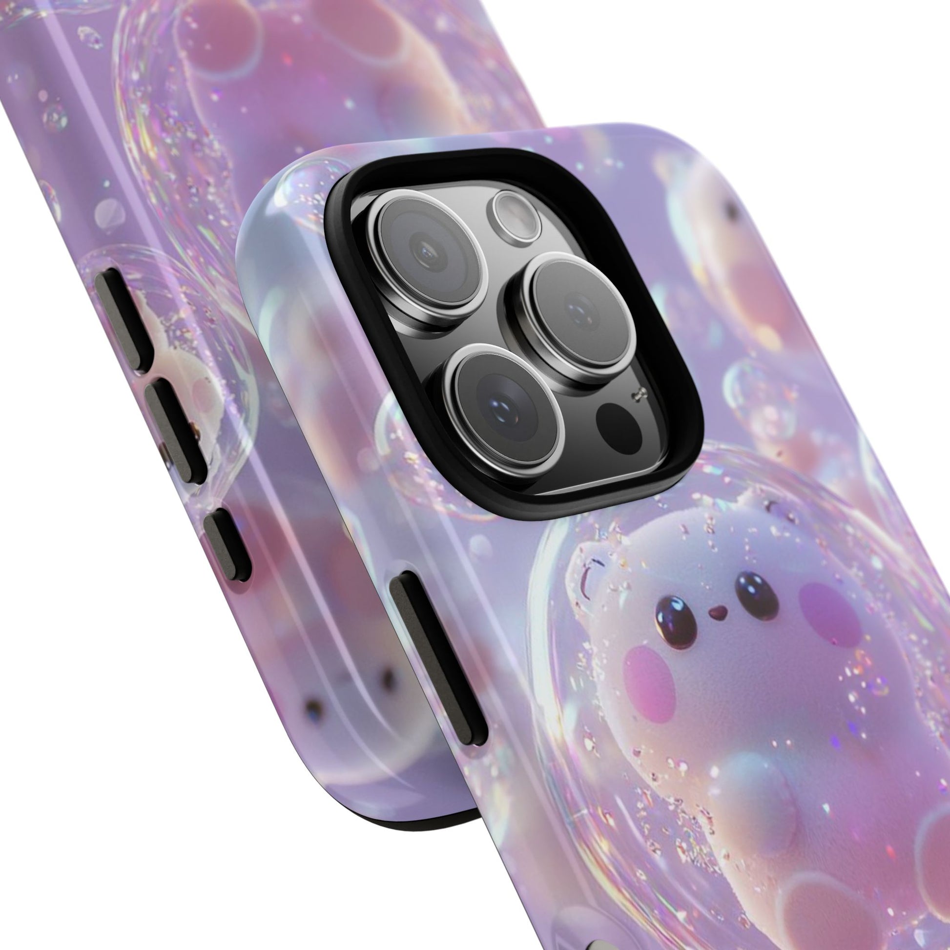 Cute Kawaii Bubble Pet Phone Case - Tough Dual-Layer Cover in Pastel Purple for iPhone 17, Samsung Galaxy & Google Pixel